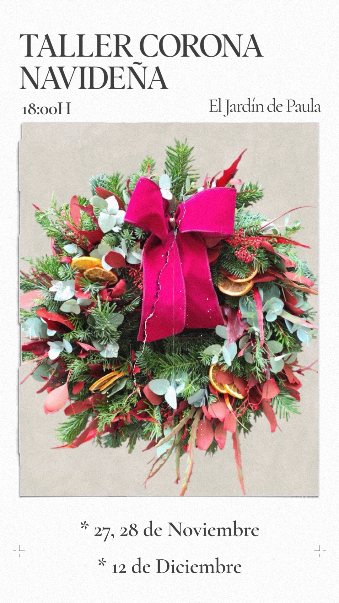 Taller de corona navideña. Nosotras proporcionamos todo el material. Las podreis forrar de pino y luego podreis elegir toda la decoracion de la corona, incluido el lazo.